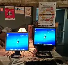 Stand selling computers running Emmabuntüs during the Big Sale for Emmaus, Paris