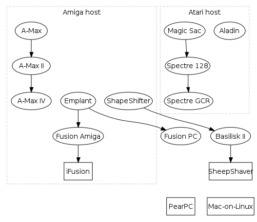 Over time full-software virtualization was available, but a ROM image was still necessary. Example virtualization software include ShapeShifter (not to be confused with the third party preference pane ShapeShifter), later superseded by Basilisk II (both by the same programmer who conceived SheepShaver, Christian Bauer), Fusion and iFusion (the latter ran classic Mac OS by using a PowerPC "coprocessor" accelerator card).