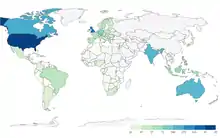 In 2022, for English Wikipedia, Americans accounted for about 40% of active editors, followed by British and Indian editors accounting for about 10% of each, and Canadian and Australian at about 5%.[32]