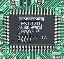 The Ensoniq AudioPCI is a Peripheral Component Interconnect (PCI)-based sound card released in 1997. It was Ensoniq's last sound card product before they were acquired by Creative Technology. The card represented a shift in Ensoniq's market positioning. Whereas the Soundscape line had been made up primarily of low-volume high-end products full of features, the AudioPCI was designed to be a very simple, low-cost product to appeal to system OEMs and thus hopefully sell in mass quantities.