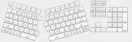 The Apple Adjustable Keyboard (1992) splits the alphanumeric keys into two halves with an adjustable opening angle