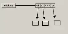 clickme is the event source –a button in this example–, and it contains a list of listeners.A common variant in object-oriented programming is the delegate event model, which is provided by some graphic user interfaces. This model is based on three entities: