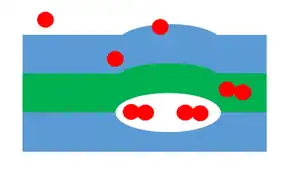 EUV photomasks work by reflecting light,[15] which is achieved by using multiple alternating layers of molybdenum and silicon. This is in contrast to conventional photomasks which work by blocking light using a single chromium layer on a quartz substrate. An EUV mask consists of 40-50[16] alternating silicon and molybdenum layers;[17] this multilayer acts to reflect the extreme ultraviolet light through Bragg diffraction; the reflectance is a strong function of incident angle and wavelength, with longer wavelengths reflecting more near normal incidence and shorter wavelengths reflecting more away from normal incidence. The pattern is defined in a tantalum-based absorbing layer over the multilayer.[18] The multilayer may be protected by a thin ruthenium layer, called a capping layer.[19][20][21]