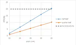 Recently, the NXE:3400B illuminator features a smaller pupil fill ratio (PFR) down to 20% without transmission loss.[57] PFR is maximized and greater than 0.2 around a metal pitch of 45 nm.[58]