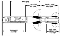 The seeker assembly is encased in a dome that is transparent to long-wave infrared radiation. The IR radiation passes through the dome and then through lenses that focus the energy. The IR energy is reflected by mirrors on to the FPA. The seeker is a two-dimensional staring FPA of 64×64 MerCad (HgCdTe) detector elements.[32] The FPA processes the signals from the detectors and relays a signal to the missile's tracker.