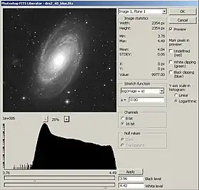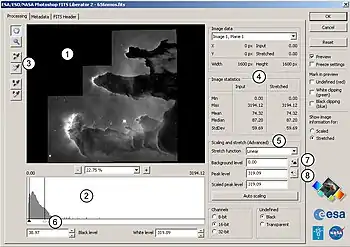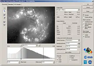 The ESA/ESO/NASA FITS (Flexible Image Transport System) Liberator is a free software program for processing and editing astronomical data in the FITS format to reproduce images of the universe. Version 3[1] and later are standalone programs; earlier versions were plugins for Adobe Photoshop. FITS Liberator is free software released under the BSD-3 license.[2] The engine behind the FITS Liberator is NASA's CFITSIO library.