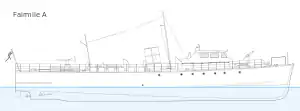 The first vessel (ML100) was not completed until May 1940 because of handling problems at low speeds, although the subsequent boats had all entered service by July.[2] Their role was to be anti-submarine escorts in coastal waters, but, once the better Fairmile B motor launches began to enter service in the autumn of 1940, the Type A boats were converted to minelayers.[3]