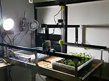 ![]() FarmBot Genesis working indoors | |