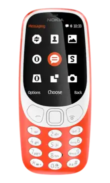 A feature phone (also spelled featurephone) is a type or class of mobile phone that retains the form factor of earlier generations of mobile telephones, typically with press-button based inputs and a small non-touch display. They tend to use an embedded operating system with a small and simple graphical user interface, unlike large and complex mobile operating systems such as Android from Google or iOS from Apple.