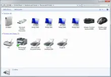 This new Control Panel applet also replaces the "Printers" window in prior versions of Windows; common printer operations such as setting the default printer, installing or removing printers, and configuring properties such as paper size are done through this control panel.
