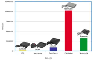 The 3DO Interactive Multiplayer was one of the earliest fifth generation consoles and was released in October 1993. Despite having massive third-party support and an unprecedented amount of hype for a first-time entrant into the industry, it had early difficulties due to software development delays and its high price. For its initial release, the 3DO had a $700 retail price tag and only a single available game ready for market. The 3DO would be discontinued only three years later. While generally regarded as a failed system, the 3DO was this generation's fourth best-selling console in a crowded field with sales of 2 million units.