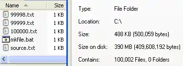 An example of slack space, demonstrated with 4,096-byte NTFS clusters: 100,000 files, each five bytes per file, which equal to 500,000 bytes of actual data but require 409,600,000 bytes of disk space to store