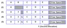 A file becomes fragmented if space needed to store its content cannot be allocated in contiguous blocks. Free space becomes fragmented when files are deleted.[11]