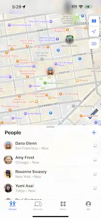 Find My is an asset tracking service made by Apple Inc.[1] that enables users to track the location of iOS, iPadOS, macOS, watchOS devices, AirPods, AirTags and a number of supported third-party accessories through a connected iCloud account.[2] Users can also share their GPS locations to others with Apple devices and view the location of others who choose to share their location. Find My was released alongside iOS 13 on September 19, 2019,[3][4] merging the functions of the former Find My iPhone (known on Mac computers as Find My Mac) and Find My Friends into a single app.[5][6] On watchOS, Find My is separated into three different applications: Find Devices, Find People and Find Items.