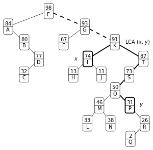 To perform a finger search on a binary tree, the ideal way is to start from the finger, and search upwards to the root, until we reach the least common ancestor,[4][5] also called the turning node,[3] of x and y, and then go downwards to find the element we're looking for. Determining if a node is the ancestor of another is non-trivial.