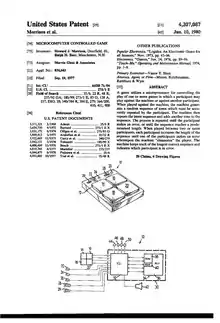 - ↑ US patent 4207087, Baer, Ralph H. & Morrison, Howard J., "Microcomputer controlled game", published 1980-06-10, assigned to Marvin Glass and Associates