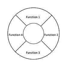 James Boritz et al. (1991)[32] compared radial menu designs. In a radial menu all items have the same distance from the prime pixel. The research suggests that in practical implementations the direction in which a user has to move their mouse has also to be accounted for. For right-handed users, selecting the left-most menu item was significantly more difficult than the right-most one. No differences were found for transitions from upper to lower functions and vice versa.