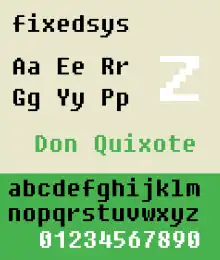 Fixedsys is a family of raster monospaced fonts. The name means fixed system, because its glyphs are monospace or fixed-width (although bolded characters are wider than non-bolded, unlike other monospace fonts such as Courier). It is the oldest font in Microsoft Windows, and was the system font in Windows 1.0 and 2.0, where it was simply named "System". For Windows 3.x, the system font was changed to a proportional sans-serif font named System, but Fixedsys remained the default font in Notepad.