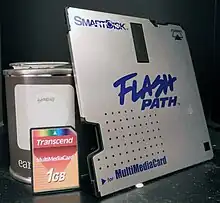 FlashPath (FlashPath Floppy Disk Adapter) were a series of devices produced by the company SmartDisk, which allowed a variety of memory cards to be used in a 3.5" Floppy disk drive. The initial version introduced in May 1998 allowed SmartMedia cards to be used with a floppy drive. Later, Memory Stick and Secure Digital/Multi Media Card versions were made as well. FlashPath adapters were sold both branded by SmartDisk, and as OEM devices under other brand names.