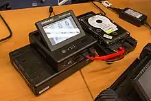 A forensic disk controller or hardware write-block device is a specialized type of computer hard disk controller made for the purpose of gaining read-only access to computer hard drives without the risk of damaging the drive's contents. The device is named forensic because its most common application is for use in investigations where a computer hard drive may contain evidence. Such a controller historically has been made in the form of a dongle that fits between a computer and an IDE or SCSI hard drive, but with the advent of USB and SATA, forensic disk controllers supporting these newer technologies have become widespread. Steve Bress and Mark Menz invented hard drive write blocking (US Patent 6,813,682). [1]