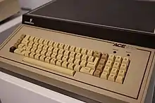 Franklin followed with the ACE 1200, which included two built-in 5¼" floppy drives and an ACE 80 Zilog Z80 processor card (a rebranded PCPI Appli-Card) for CP/M compatibility—a popular third-party option for the Apple II. The ACE 1200 was identical to the ACE 1000, but with the addition of dual built-in floppy drives and four expansion cards pre-installed (one of which offered color video; the ACE 1000 was monochrome).[2] At its peak workforce in 1983, Franklin employed 450 employees.[3]