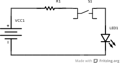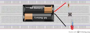 ![]() Breadboard view of a simple circuit, drawn with Fritzing. |