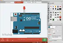 Fritzing can be seen as an electronic design automation (EDA) tool for non-engineers: the input metaphor is inspired by the environment of designers (the breadboard-based prototype), while the output is focused on accessible means of production. As of December 2, 2014 Fritzing has made a code view option, where one can modify code and upload it directly to an Arduino device.[7]