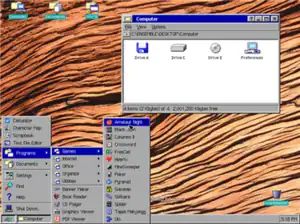 GEOS (later renamed GeoWorks Ensemble, NewDeal Office, and Breadbox Ensemble) is a computer operating environment, graphical user interface (GUI), and suite of application software. Originally released as PC/GEOS, it runs on DOS-based, IBM PC compatible computers. Versions for some handheld platforms were also released and licensed to some companies.[1]