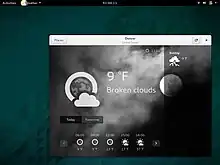 | 3.24 | March 2017 | Night Light is a new feature and reduces eye strain at night by coloring the screen a little red. The date/time drop down now shows Weather information. A refined look to notifications. Gnome Calendar got a week view. Gnome Web got improvements to the experience of adding and managing bookmarks, and ships with Easy Privacy as default.[111] The online accounts, user and printer settings panel was redesigned.[112] |