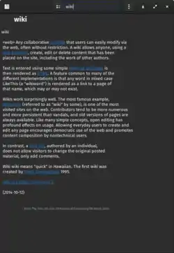 ![]() The GNOME Dictionary displaying the definitions for Wiki | |