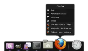 GNOME Do (often referred to as Do) is a free and open-source application launcher for Linux originally created by David Siegel,[1] and currently maintained by Alex Launi. Like other application launchers, it allows searching for applications and files, but it also allows specifying actions to perform on search results. GNOME Do allows for quick finding of miscellaneous artifacts of GNOME environment (applications, Evolution and Pidgin contacts, Firefox bookmarks, Rhythmbox artists and albums, and so on) and execute the basic actions on them (launch, open, email, chat, play, etc.).[2]