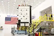 GPS Block III (previously Block IIIA) consists of the first ten GPS III satellites, which will be used to keep the Navstar Global Positioning System operational. Lockheed Martin designed, developed and manufactured the GPS III Non-Flight Satellite Testbed (GNST) and all ten Block III satellites.[7] The first satellite in the series was launched in December 2018.[8][9][10]