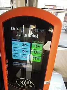 ![]() Ticket terminal in Prague, showing August 23 as the date (instead of April 8) after the 2019 GPS week number rollover | |