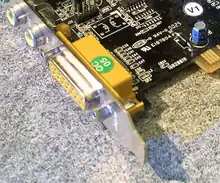 The IBM PC game port first appeared during the initial launch of the original IBM PC in 1981, in the form of an optional US$55 expansion card known as the Game Control Adapter.[8][9] The design allowed for four analog axes and four buttons on one port, allowing two joysticks or four paddles to be connected via a special "Y-splitter" cable.[10]