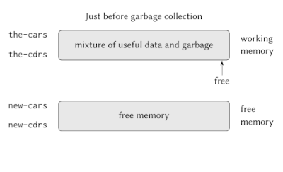 In Baker's algorithm, the allocation is done in either half of a single region of memory. When it becomes half full, a garbage collection is performed which moves the live objects into the other half and the remaining objects are implicitly deallocated. The running program (the 'mutator') has to check that any object it references is in the correct half, and if not move it across, while a background task is finding all of the objects.[40]