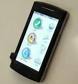 The Garmin Nüvifone is a discontinued line of Internet-enabled mobile phone and personal navigation devices manufactured by a partnership between Garmin and Asus. It makes use of a touchscreen with virtual keyboards and buttons.
