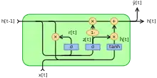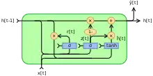 Gated recurrent units (GRUs) are a gating mechanism in recurrent neural networks, introduced in 2014 by Kyunghyun Cho et al.[1] The GRU is like a long short-term memory (LSTM) with a gating mechanism to input or forget certain features,[2] but lacks a context vector or output gate, resulting in fewer parameters than LSTM.[3] GRU's performance on certain tasks of polyphonic music modeling, speech signal modeling and natural language processing was found to be similar to that of LSTM.[4][5] GRUs showed that gating is indeed helpful in general, and Bengio's team came to no concrete conclusion on which of the two gating units was better.[6][7]
