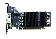 The GeForce 7500 LE is an OEM GPU and is identical to the 7300 GS based on the G72 core. It has either 128 MB or 256 MB of dedicated video memory, however it also supports TurboCache, giving it up to 512 MB of video memory. It has DDR2 type memory and uses 64-bits memory interface. The card also has 550 MHz core clock speed and 263 MHz or 324 MHz memory clock speed (526 MHz or 648 MHz effective).[5]