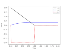Optimal control is the use of mathematical optimization to obtain a policy that is constrained by differential , equality , or inequality equations and minimizes an objective/reward function . The basic optimal control is solved with GEKKO by integrating the objective and transcribing the differential equation into algebraic form with orthogonal collocation on finite elements.