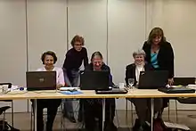 In the early days of computers and computing, managers readily hired women as programming was seen as a low-skill clerical occupation, similar to telephone operators and typists.[1] They often worked as "human computers," making complicated calculations and working in large groups, such as the Harvard Computers.[2] They also worked on ballistic calculations and cryptography.[3][4] However, since 1843 women have been making contributions to computer science when Charles Babbage hired Ada Lovelace as an assistant. Lovelace went on to write one of history's earliest computer programs. Joan Clarke was also one such woman who made immense contributions to computing during World War II. She was a British mathematician and codebreaker who worked at Bletchley Park on breaking codes generated by Enigma machines, eventually developing Alan Turing's bombe technology to aid in deciphering complex Nazi messages. Despite her significant contributions to cybersecurity, Clarke's accomplishments were largely ignored until recently. She passed away in 1986 but in 2013, was posthumously awarded an OBE (Order of the British Empire) for her work as a cryptanalyst.[5] In 1946, the University of Pennsylvania's Moore School of Electrical engineering and the United States Army Ballistics Research Laboratory began to research the trajectories of projectiles. However, there were only two hundred women involved in this research.[6] Additionally, due to the lack of labor resources during the Second World War, women were actively recruited into computing jobs.[6] The early programmers on machines such as ENIAC were mostly women.,[1] an example being the six women who designed the public demonstrations and prepared ENIAC for its public debut.[7]