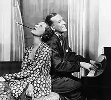 Charlot's Revue of 1926, starring Lawrence, Lillie, and Jack Buchanan, opened on Broadway in late 1925. In his review, Alexander Woollcott singled out Lawrence, calling her "the personification of style and sophistication" and "the ideal star."[16] Like its predecessor, it toured following the Broadway run. It proved to be Lawrence's last project with Charlot. In November 1926, she became the first British performer to star in an American musical on Broadway when she opened in Oh, Kay!, with music by George Gershwin, lyrics by Ira Gershwin, and a book by Guy Bolton and P.G. Wodehouse. Following a run of 256 performances, the musical opened in London’s West End, where it ran for 213 performances.[17]