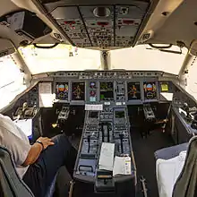 A glass cockpit is an aircraft cockpit that features an array of electronic (digital) flight instrument displays, typically large LCD screens, rather than traditional analog dials and gauges.[1] While a traditional cockpit relies on numerous mechanical gauges (nicknamed "steam gauges") to display information, a glass cockpit uses several multi-function displays and a primary flight display driven by flight management systems, that can be adjusted to show flight information as needed. This simplifies aircraft operation and navigation and allows pilots to focus only on the most pertinent information. They are also popular with airline companies as they usually eliminate the need for a flight engineer, saving costs. In recent years the technology has also become widely available in small aircraft.