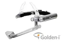 Golden-i headsets feature a 15-inch virtual laptop-size qHD microdisplay manufactured by Kopin Corporation[5] which can be adjusted to be used below the left or right eye,[6] 9-axis head-tracking technology with a digital compass and GPS,[7] speech recognition software with two noise-cancelling microphones[8] (supporting 38 languages),[9] Bluetooth,[1] Wi-Fi and USB connectivity,[4] 3D graphics accelerators.[10] The 18650 Li-ion battery will last 8+ hours. The latest Golden-i Gen 3.8 headset computer also has built-in 14MP camera.