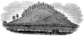 In 1843, after reading a missionary tract written by Orson Pratt, three men in Kinderhook, Pike County, Illinois – Robert Wiley, Wilburn Fugate, and Bridge Whitton – decided to collaborate to counterfeit a set of metal plates and "startle the natives," as one of Fugate's sons recalled.[213][214] The trio forged plates from copper, etched them with acid, and buried them in a mound, digging them up on April 23, 1843, in a pretended discovery.[214] The Quincy Whig published a story on the discovery, and the Times and Seasons and Nauvoo Neighbor, a publication of the church and of the city respectively, reprinted the story. The Mormon community soon expressed much interest in the plates.[214]