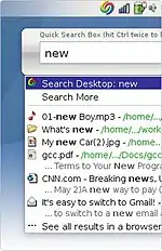 When searching in the sidebar, deskbar or floating deskbar, Google Desktop displays a "Quick Find" window. This window is filled with six (by default) of the most relevant results from the user's computer. These results update as the user types, and allows use without having to open another browser window.