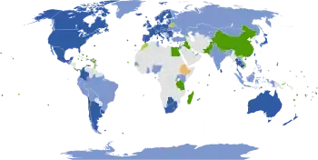 | Oceania | Australia, New Zealand, Guam, Northern Mariana Islands, American Samoa, Pitcairn Islands, Christmas Island, Cocos (Keeling) Islands | Vanuatu, United States Minor Outlying Islands |