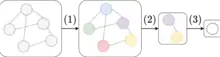 Local pooling layers coarsen the graph via downsampling. We present here several learnable local pooling strategies that have been proposed.[27] For each cases, the input is the initial graph is represented by a matrix of node features, and the graph adjacency matrix . The output is the new matrix of node features, and the new graph adjacency matrix .