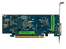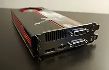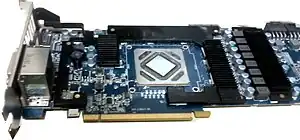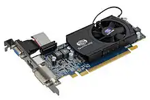 ![]() Sapphire Radeon HD 5570, a PCI Express video card with VGA, HDMI, and DVI ports and a small cooling fan | |