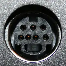 Non-standard 7-pin mini-DIN connectors (termed "7P") are used in some computer equipment (PCs and Macs). A 7P socket accepts and is pin compatible with a standard 4-pin S-Video plug.[58] The three extra sockets may be used to supply composite (CVBS), an RGB or YPbPr video signal, or an I²C interface.[58][59] |