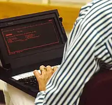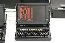 1986; returning to a plasma screens (but with red/orange text color and wide aspect ratio). The internal power supply can be ejected and a battery-pack is installed in its place.[5]